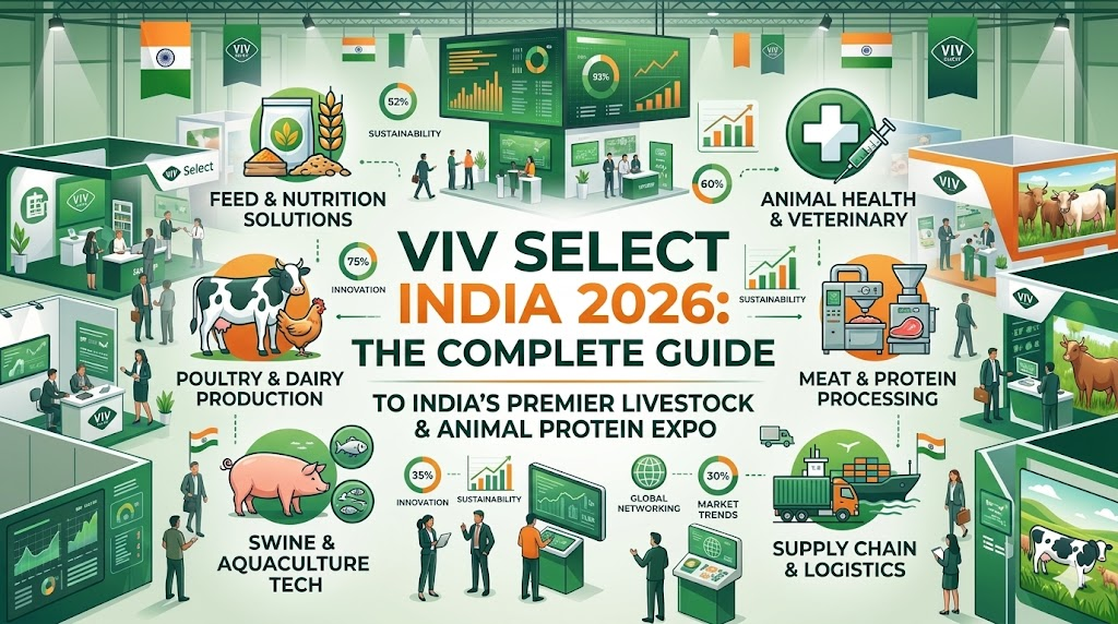 VIV Select India 2026 is a B2B trade exhibition completely focusing on the “Feed to Food” value chain. It is basically decoding every specific aspect in animal feed production to food processing and even supply chain management. The setup is part of the internationally recognised VIV exhibition network, which focuses on the following: