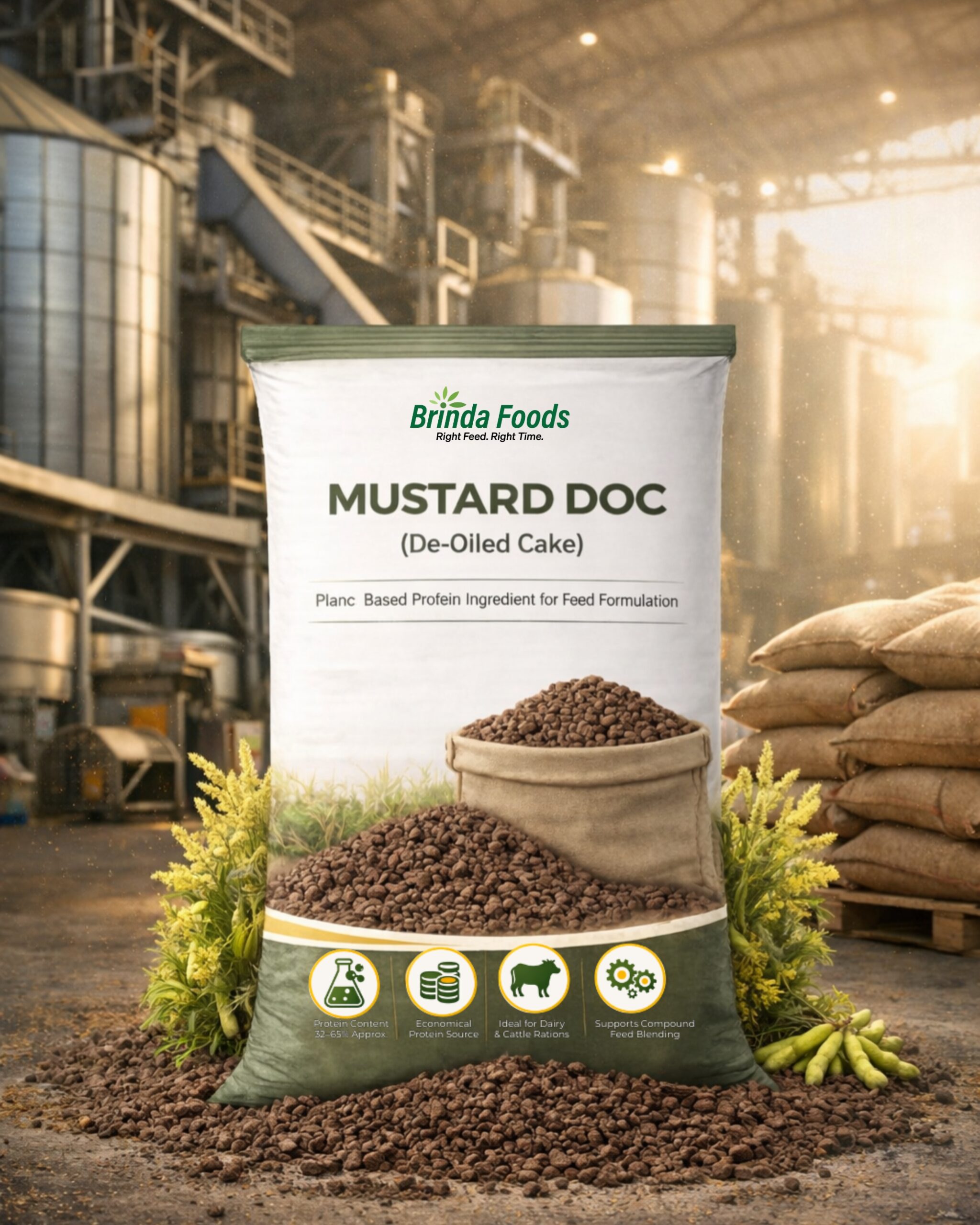 Our mustard doc is concentrated with a high amount of bypass energy. It helps in regulating the muscle development and the yield of animals. It is a high-performance source of proteins, improving the production results of modern farmers.